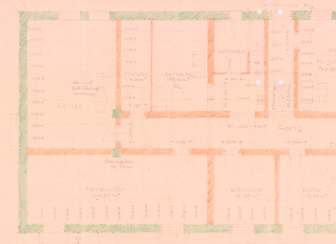 Nachdem im Frühjahr die Obergeschosse entkernt wurden folgte nun das Kellergeschoss. Mit Hilfe eines Elektrobaggers wurden hier sowohl Zwischenwände entnommen als auch die Punktfundamente für die statisch notwendigen Träger freigelegt. Die Räumlichkeiten für die Naturthemen wurden durch gezielte Wanddurchbrüche miteinander verbunden und gleichzeitig wurde mit der grundlegenden Errichtung der barrierefreien Rampe als Zugang zu den Ausstellungsflächen begonnen.
